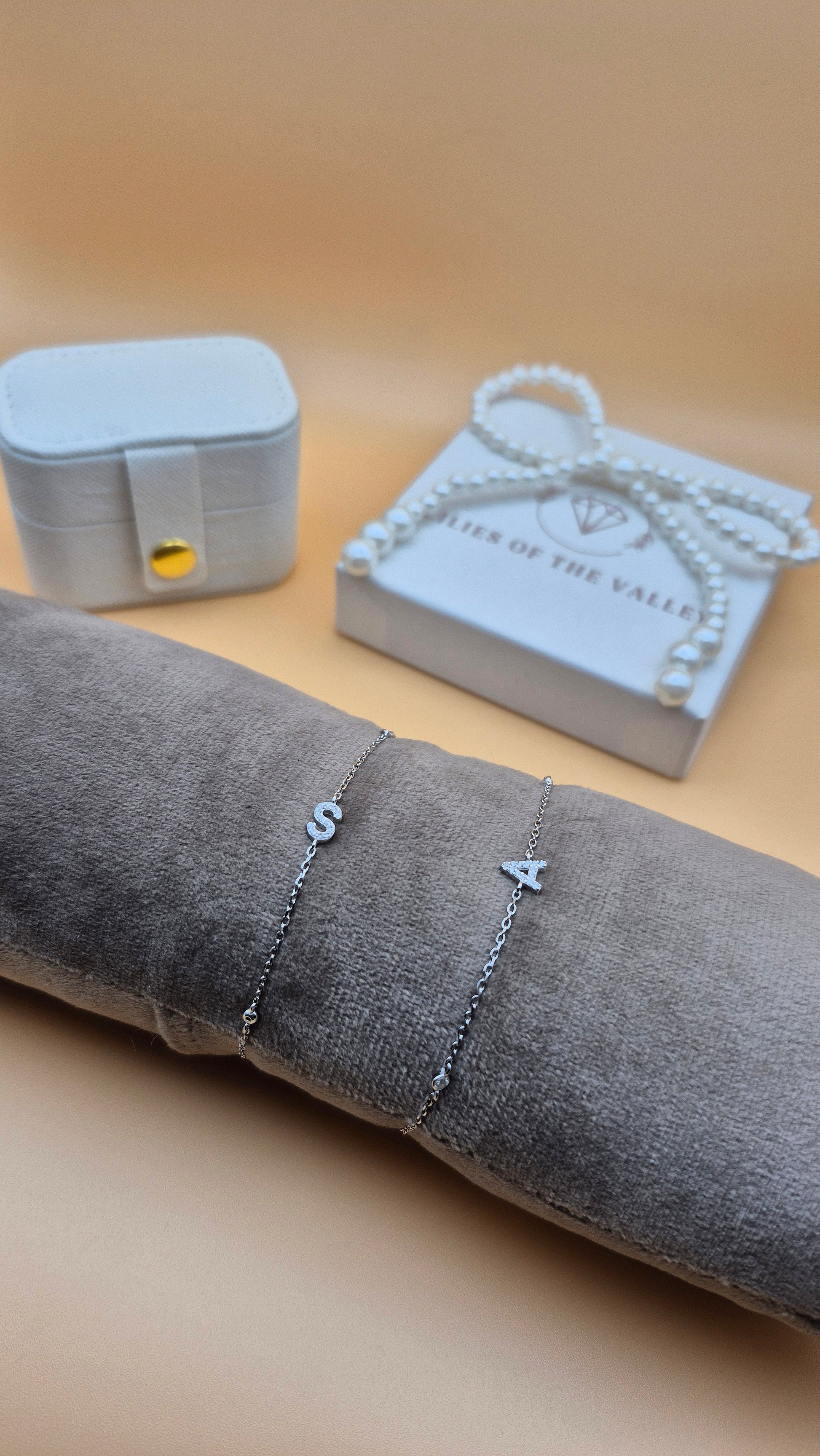 Valley Letter Bracelet – Delicate Sterling Silver Chain with Custom Initial Pendant