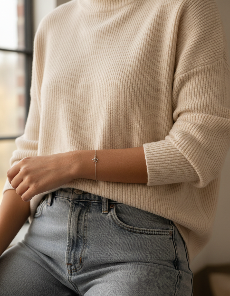 Item type: Sterling Silver Adjustable Bracelet with Airplane Charm